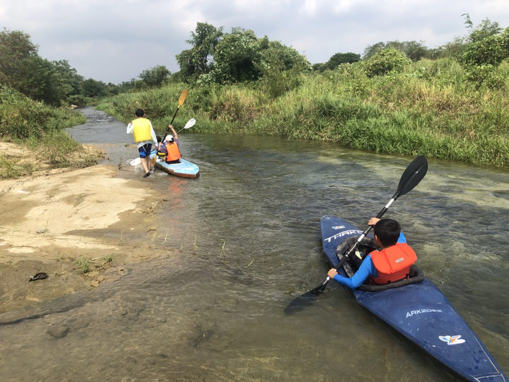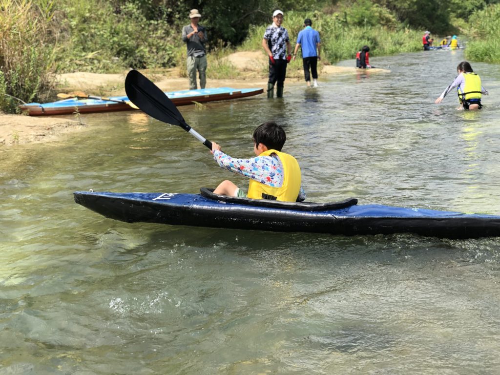 9/10(水) なかの学舎は、地域にいらっしゃる様々な専門性、ご経験のある多くの方たちに支えていただいています。造園業を営まれている竹田さんもそのお一人です。竹田さんは、かつて八王子で開催されていた手作りの筏レースで何度も優勝した経験をお持ちの方で、自ら設計・作製したカヤックを3艇運んでくださり、学舎の子どもたちに体験の機会をつくってくださっています。この日は、お友達の平野さん、古泉さんも手作りのカヤック2艇を車に積んでお手伝いに来てくださいました。16名の子どもたちが参加し、いつもの北浅川で、思う存分カヤック体験を楽しみました。竹田さん、平野さん、古泉さん、本当にありがとうございました!